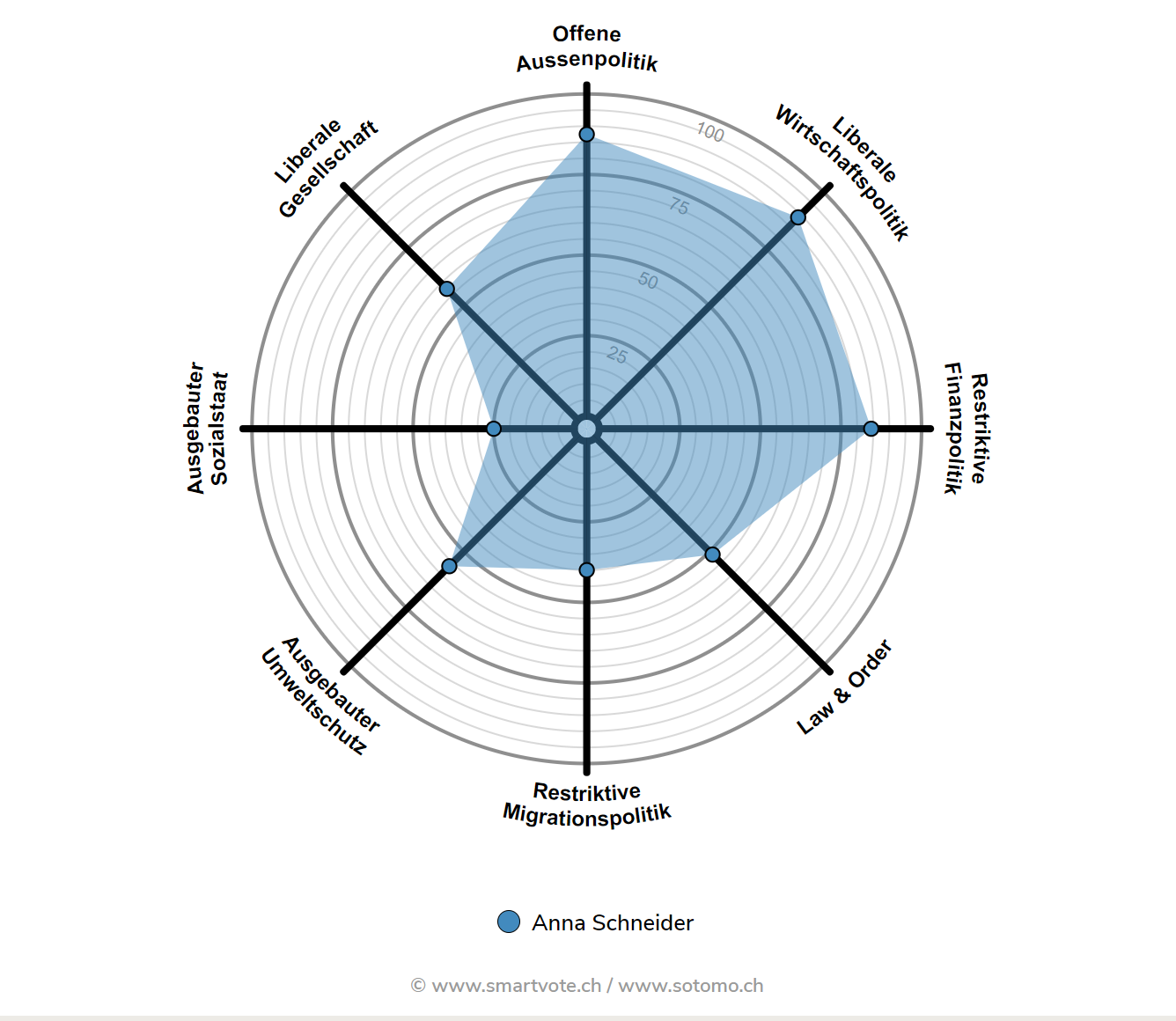 Zu beachten ist dabei, dass Smartvote teilweise etwas "interessante" Bewertungen vornimmt (Stichwort liberale Gesellschaft). Ich empfehle deshalb für ein besseres Verständnis dieses Tools den Fragekatalog unbedingt ebenfalls anzuschauen oder am Besten gleich auszufüllen und sich Wahlempfehlungen anzeigen zu lassen. (09/2024)